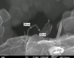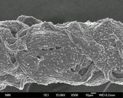 Под руководством проф. Б.П. Сандомирского выполняется проект УНТЦ № 4913 "Использование углеродных волокон и наноструктур углерода в клеточной биологии и тканевой инженерии". Исследовательская группа проекта состоит из ученых отделов экспериментальной криомедицины, биохимии, физиологии клетки, отдела научной информации ИПКиК НАН Украины и ученых Института физики твердого тела Национального научного центра "Харьковский физико-технический институт" (ХФТИ). Целью данного проекта является разработка биоинженерных конструкций хрящевой ткани на основе мезенхимальных стволовых клеток и углеродных носителей. Углеродные материалы в виде каталитических осадков углерода различных модификаций получаются и предоставляются учеными из ХФТИ. Ими исследована морфологическая структура волокон методом сканирующей электронной микроскопии. Результаты исследований представлены на рис. 1. Результаты исследований свидетельствуют о трубчатой структуре полученных углеродных волокон.