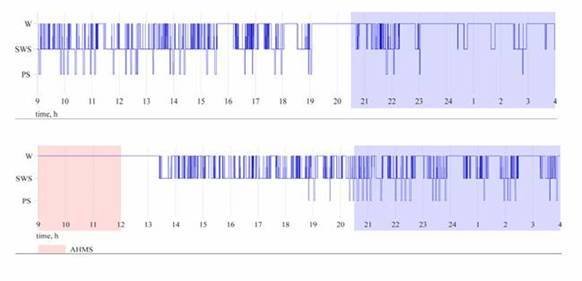 При угнетении метаболизма могут происходить разнонаправленные изменения в скорости ферментативных реакций, процессах распада и синтеза белков. В реализации этих процессов особую роль играют протеолитические ферменты, которые не только участвуют в гидролизе белковых молекул до аминокислот, но и образуют активные формы ферментов из неактивных предшественников (ограниченный протеолиз). Обладая высокой активностью, протеолитические ферменты могут представлять и потенциальную опасность для белковых структур органов и тканей, поэтому наличие специфических ингибиторов протеолиза является одним из важных, хотя и не единственным, способом контроля активности протеиназ. Показано, что ИГМС приводит к разнонаправленному изменению показателей протеолитической активности: общая протеолитическая активность незначительно повышалась, альфа-1-ингибитор протеиназ оказался устойчивым, тогда как нетрипсиноподобные протеиназы и альфа-2-макроглобулин проявили высокую чувствительность к факторам, вызывающим ИГМС. Отогрев животного в течение 2 ч после развития ИГМС способствует повышению активности протеиназ в тканях мозга, что указывает на интенсификацию реакций ограниченного протеолиза и расходование альфа-1-ингибитора протеиназ, возможно, обусловленное накоплением дефектных молекул, синтезом белков теплового шока и его связыванием с ними и контролирование избыточной активности протеиназ с помощью альфа-2-макроглобулина. Однонаправленная тенденция к нормализации активности протеолитических ферментов и их ингибиторов отмечается через 24 ч после ИГМС, что может свидетельствовать о завершении репаративных процессов в организме (работа выполнена со с.н.с. Ломако В.В. и с.н.с. Самохиной Л.М. ГП "Институт Терапии им. Л.Т. Малой АМН Украины"). Существует гипотеза, согласно которой в период естественного сна происходит восстановление "резервного" потенциала клеток. Причем, в период так называемого медленноволнового сна (МВС) происходят анаболические процессы во всем организме, включая головной мозг, а в период так называемого парадоксального сна (ПС) - синтетические процессы преимущественно в ЦНС. Длительное отсутствие ПС, обнаруженное нами у крыс при выходе из ИГМС, может указывать на то, что в первую очередь организм нуждается в восстановлении не структурных, чему способствует ПС, а функциональных белков, синтез которых происходит в МВС. В этой связи, можно предположить, что кратковременное компенсаторное увеличение сна, развивающееся в течение первых часов после выхода из ИГМС, согласно гипотезе об анаболической роли сна, способствует интенсификации восстановительных процессов как в ЦНС, так и в организме. Кроме того, МВС может играть значимую роль в восстановлении температурного гомеостаза. Структура и цикличность сна восстанавливается в течение 24 ч. При этом ИГМС не приводит к стойким продолжительным изменениям в цикле сон-бодрствование и не влияет на суммарную длительность сна в течение суток (работа выполнена совместно с асп. Венцковской Е.А.).