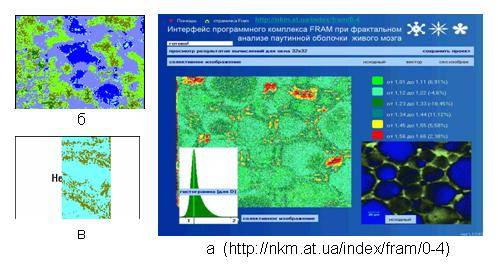 На протяжении четверти века одним из приоритетных научных направлений отдела явились нейробиологические аспекты функционирования охлаждённого мозга гомойо- и гетеротермных животных. Наиболее детально и комплексно изучалось структурно-функциональное состояние гематоэнцефалического барьера (ГЭБ) в центральных механизмах терморегуляции при гипотермии и гибернации. Эти исследования определили тему докторской диссертации выполняемой Марченко В.С. Было показано, что одним из важных механизмов действия охлаждения является изменение проницаемости ГЭБ. Гипотермические воздействия, особенно ритмически организованные, способны модифицировать структурно-функциональное состояние элементов ГЭБ, изменять уровень селективной проницаемости для нейромедиаторов. Динамический баланс нейроактивных веществ при гипотермии и гибернации может, как вызывать, так и быть следствием структурно-функциональных трансформаций, изменяющих морфофизиологическую подвижность, лабильность элементов ГЭБ. В последние годы в биологии и медицине формируется новое научное направление, позволяющее количественно оценивать наиболее общий уровень упорядоченности или хаотичности, по сути, лабильности функциональной архитектоники систем организма по показателям мультифрактальной размерности. Важной составной частью, первым и последним защитным рубежом ГЭБ является структурно-функциональный комплекс "эндокринного древа" эндотелия кровеносных капилляров. Связанный нейро-глиальной "паутиной", пронизанный лабиринтом межклеточного пространства и мозговых желудочков, укутанный эпителиальной сетью мозговых оболочек, он формирует сложную гармонию, структурная организация которой подобна при разных увеличениях, наглядно демонстрирует преимущества фрактальных и необходимость новых парадигм функциональной морфологии. Морфологическим фракталом можно назвать объект со сложной иерархией структур, который состоит из частей в статистическом смысле подобных целому. Его размерность по Хаусдорфу больше топологической и, как правило, дробная. Фрактальный анализ хорошо зарекомендовал себя в морфологических исследованиях, например, в морфометрии ультраструктуры гипоталамуса при традиционных методах лечебной гипотермии. Мы использовали этот метод нелинейной морфометрии в изучении ультраструктурных механизмов ритмических холодовых воздействий для разработки новых методов так называемой резонансной терапии, когда с лечебной целью применяют различ-ные виды сенсорной стимуляции с частотными параметрами, соответствующие индивидуальным структурно-функциональным осцилляторам физиологических систем. Для этих целей был разработан программный комплекс FRAM (Рис.1).